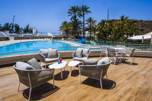 Hôtel situé en hauteur à distance de la plage avec petit shopping center près de la plage. Navette gratuite organisée par l'hotel plusieurs fois par jour vers la playa del Ingles et vers les dunes de Maspalomas. Bus public à proximité de l'hôtel facile d'utilisation.