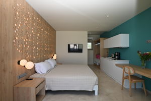 Propreté irréprochable. Accueil sympathique. Petite structure donc, on s'y sent comme chez soi. Appartement simple, sans chichis, mais avec tout le nécessaire. Petite kitchenette avec l'indispensable. Salle de bain nickel. Très bon WiFi. Terrasse privative avec vue sur mer.